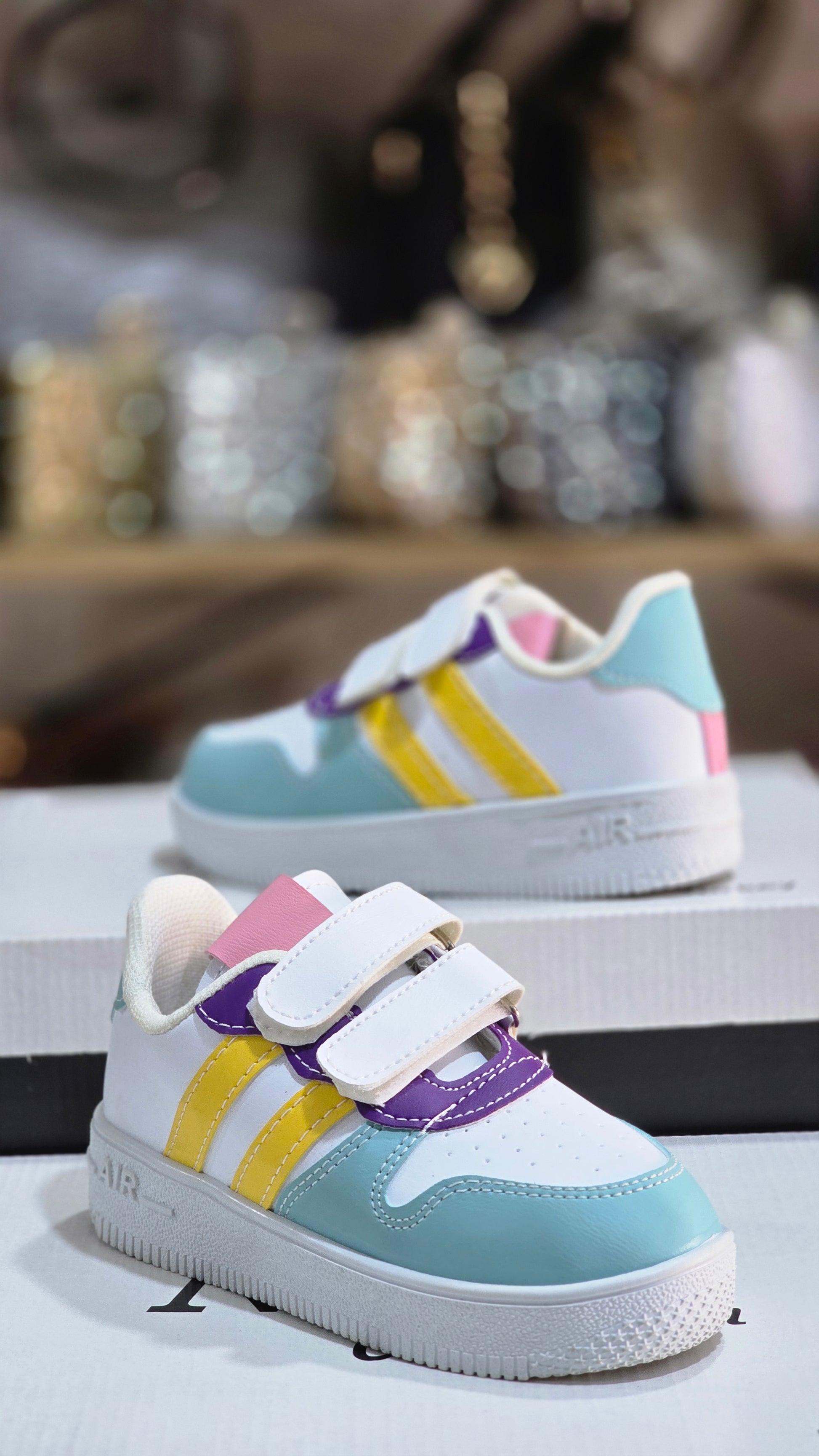 Renkli ve enerjik tasarımıyla öne çıkan bu çocuk spor ayakkabısı, hem günlük kullanımda hem de okul kombinlerinde rahatlık ve şıklığı bir arada sunar.