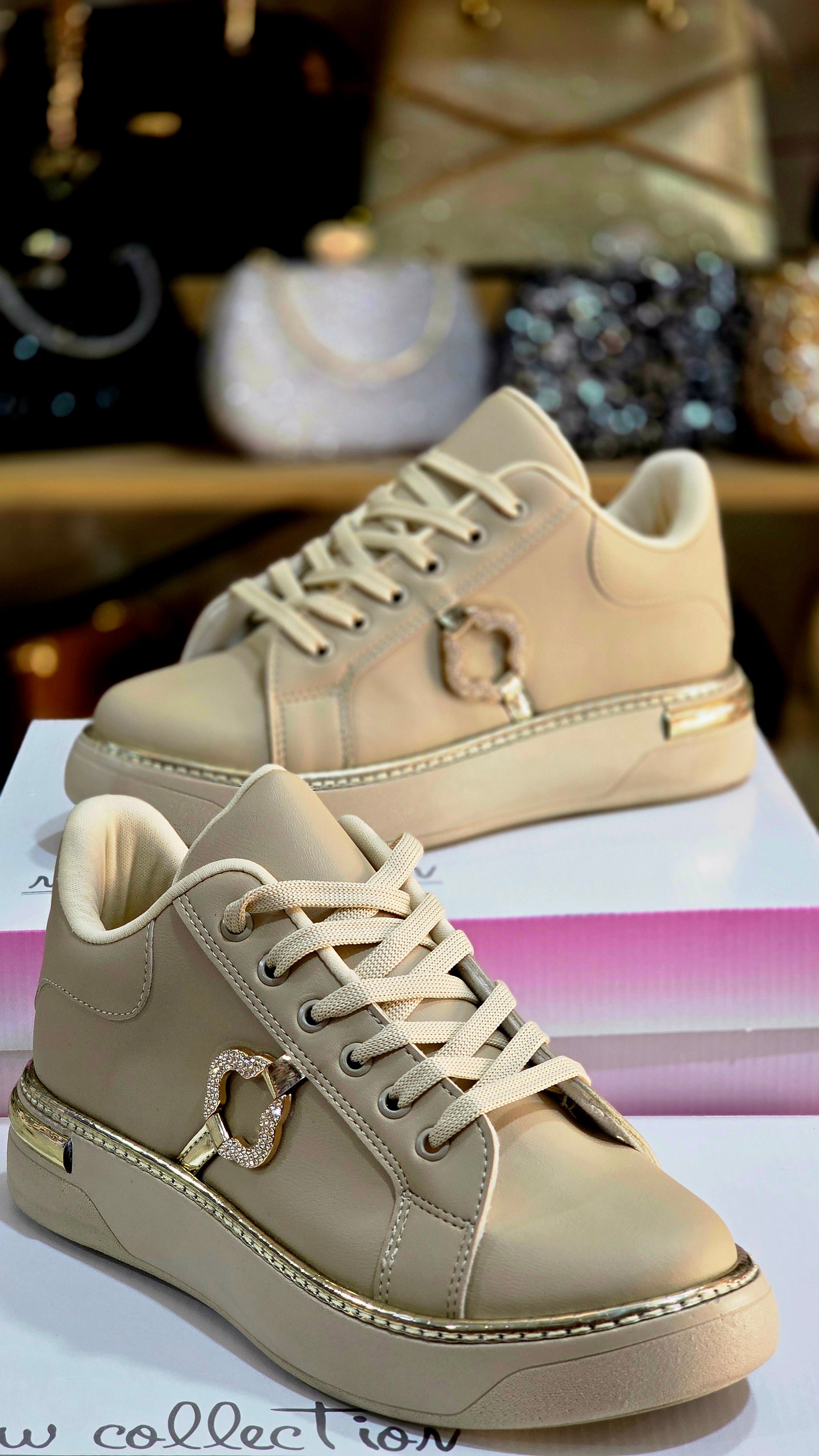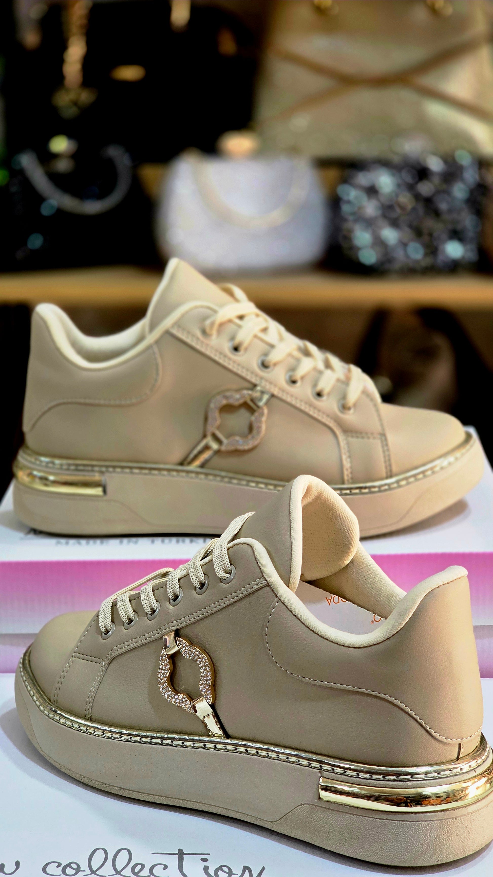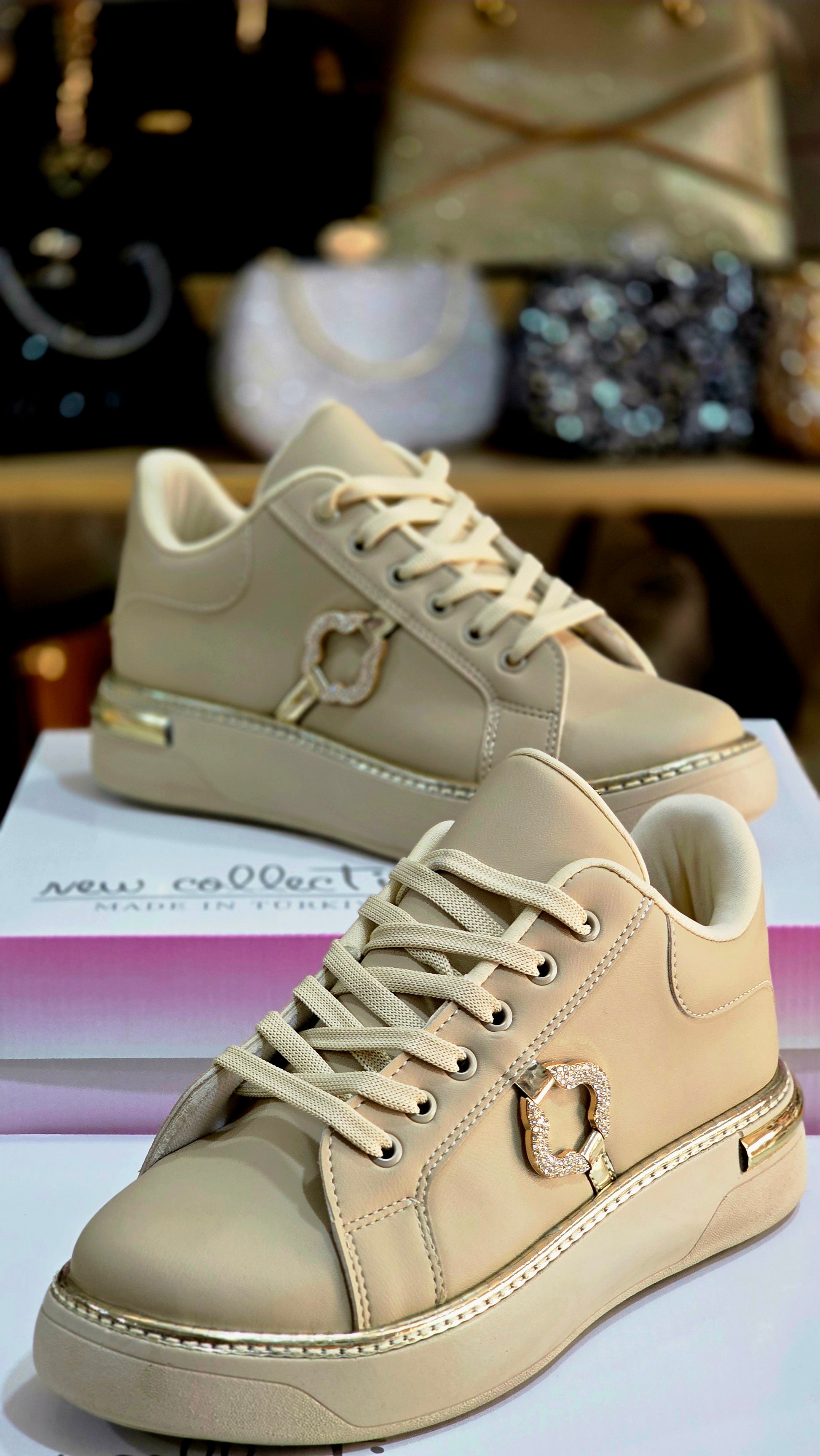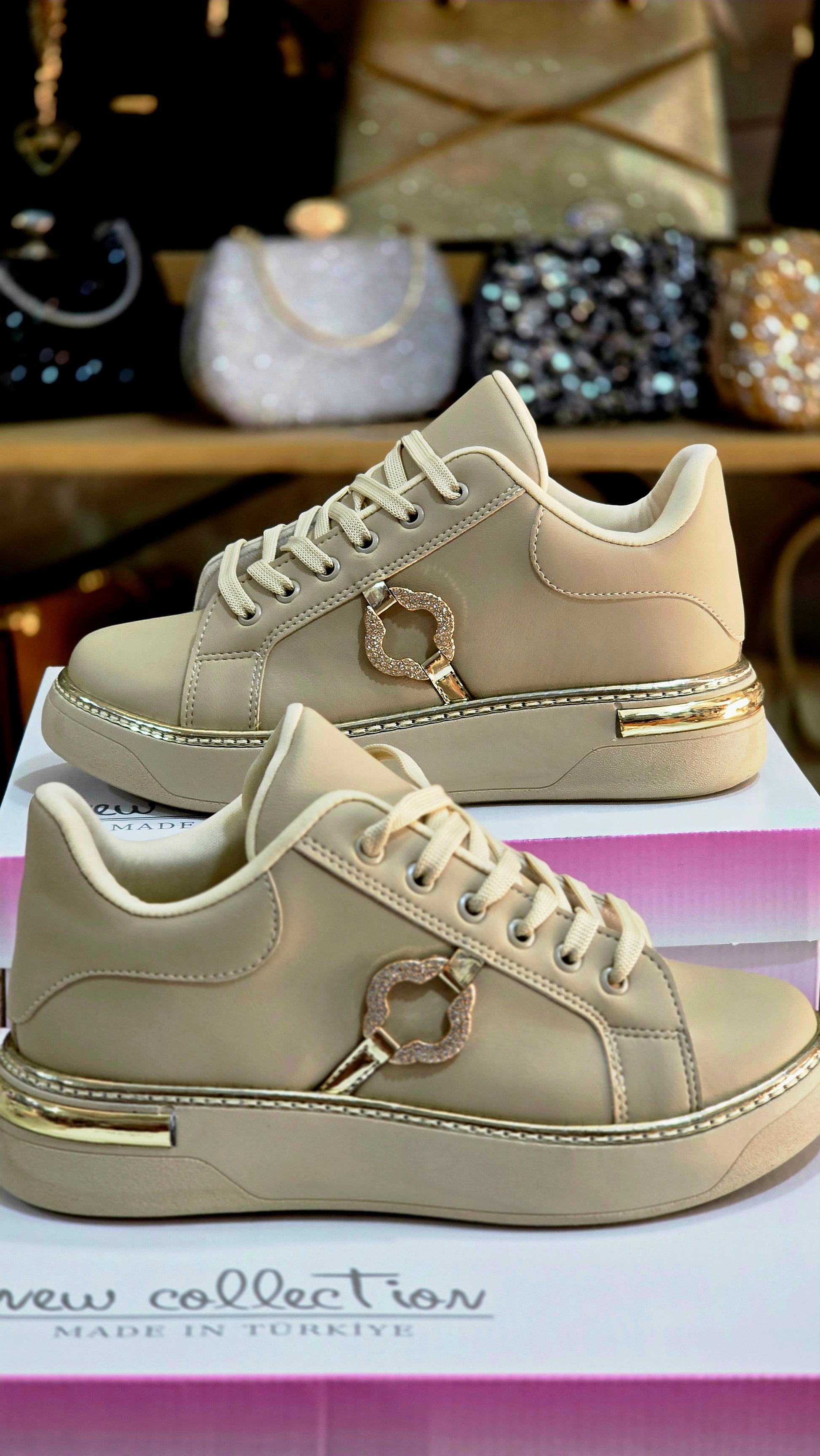 - Zarif gold toka detayları ile şıklığı ve rahatlığı bir arada sunan kadın spor ayakkabısı, günlük kullanım için idealdir.