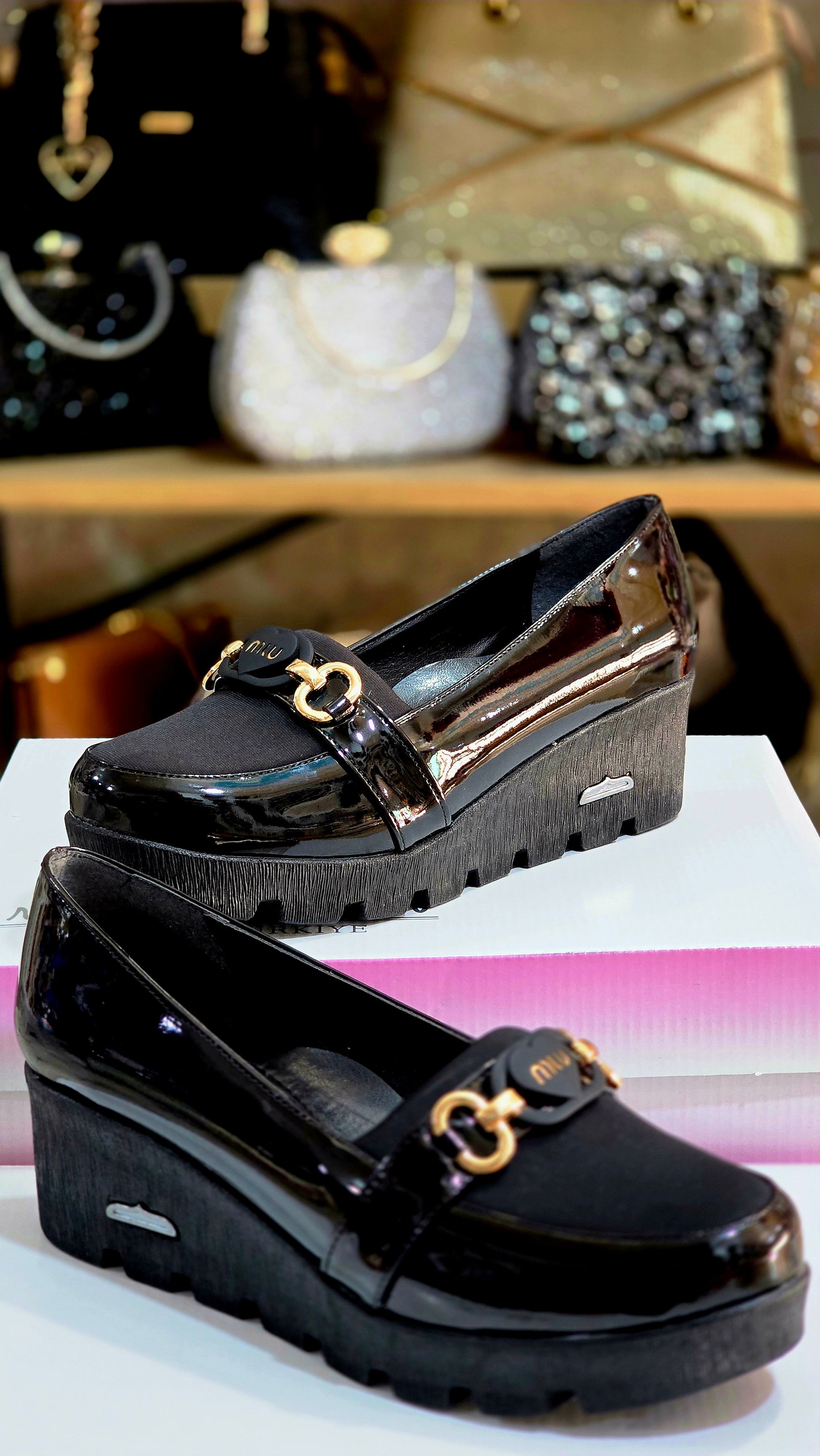 Loafers Kadın Rugan Siyah Kalın Taban Loafer Ayakkabı