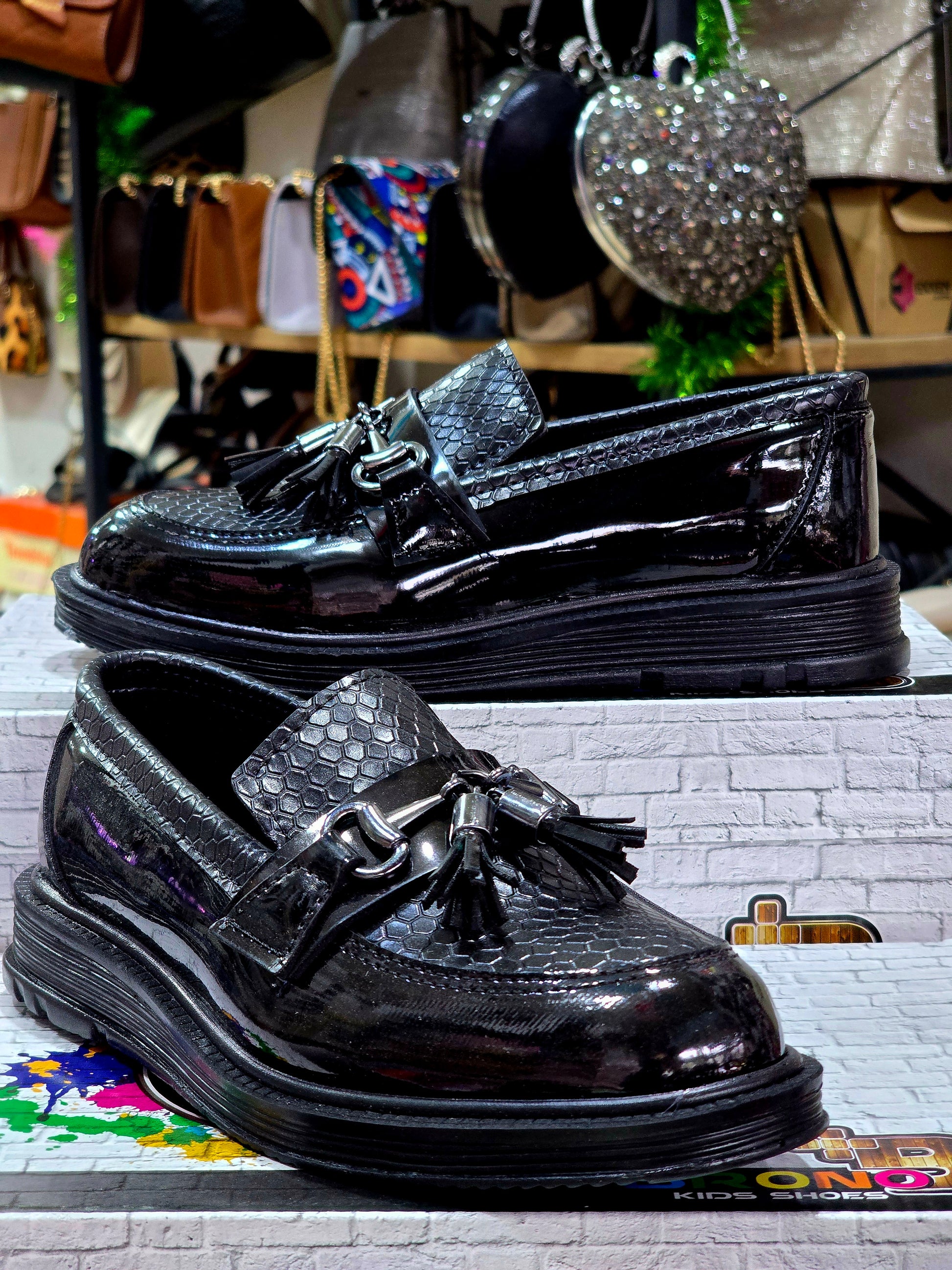 - Siyah renkteki püsküllü tasarımıyla şıklığı ve rahatlığı bir arada sunar.