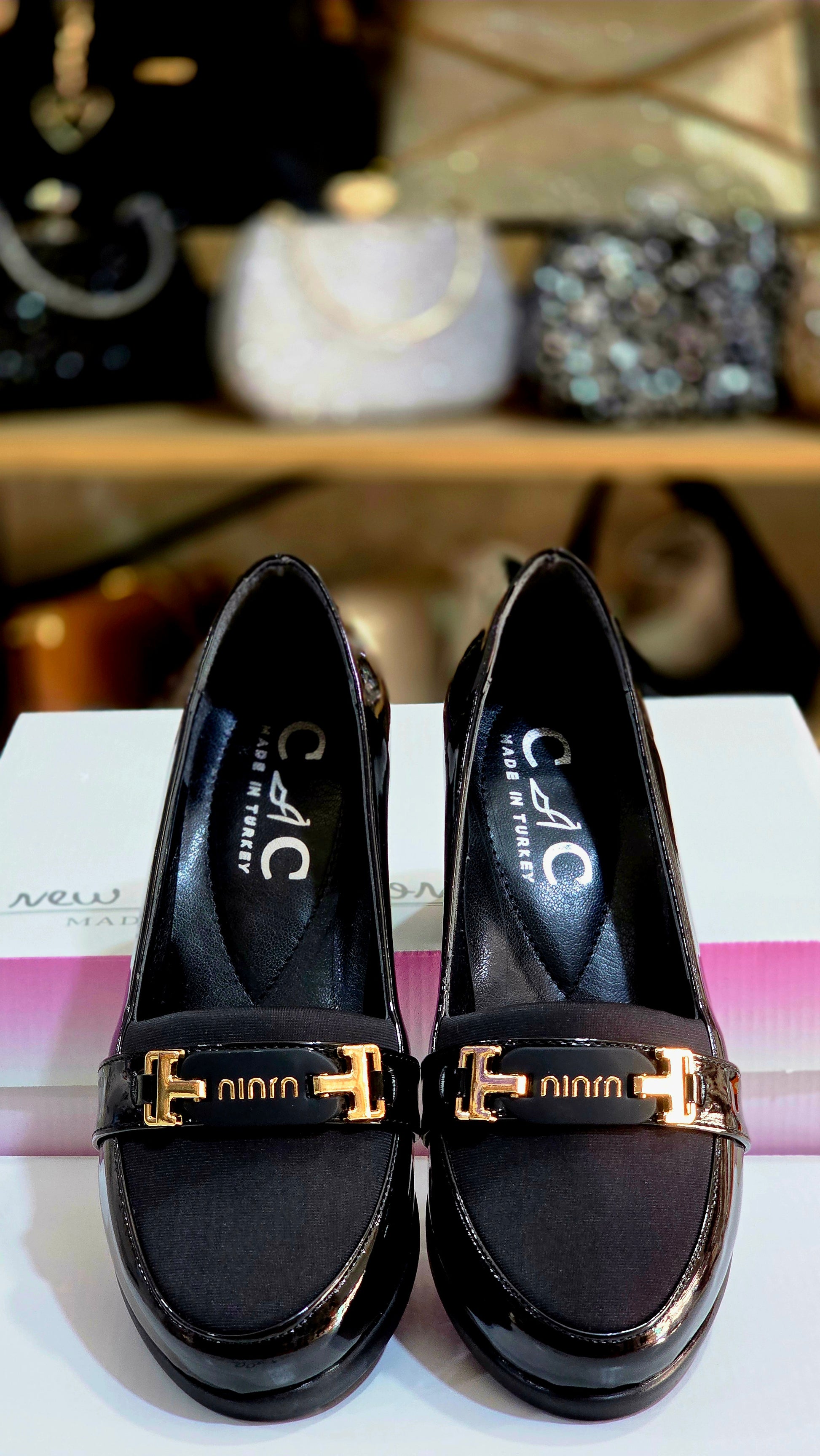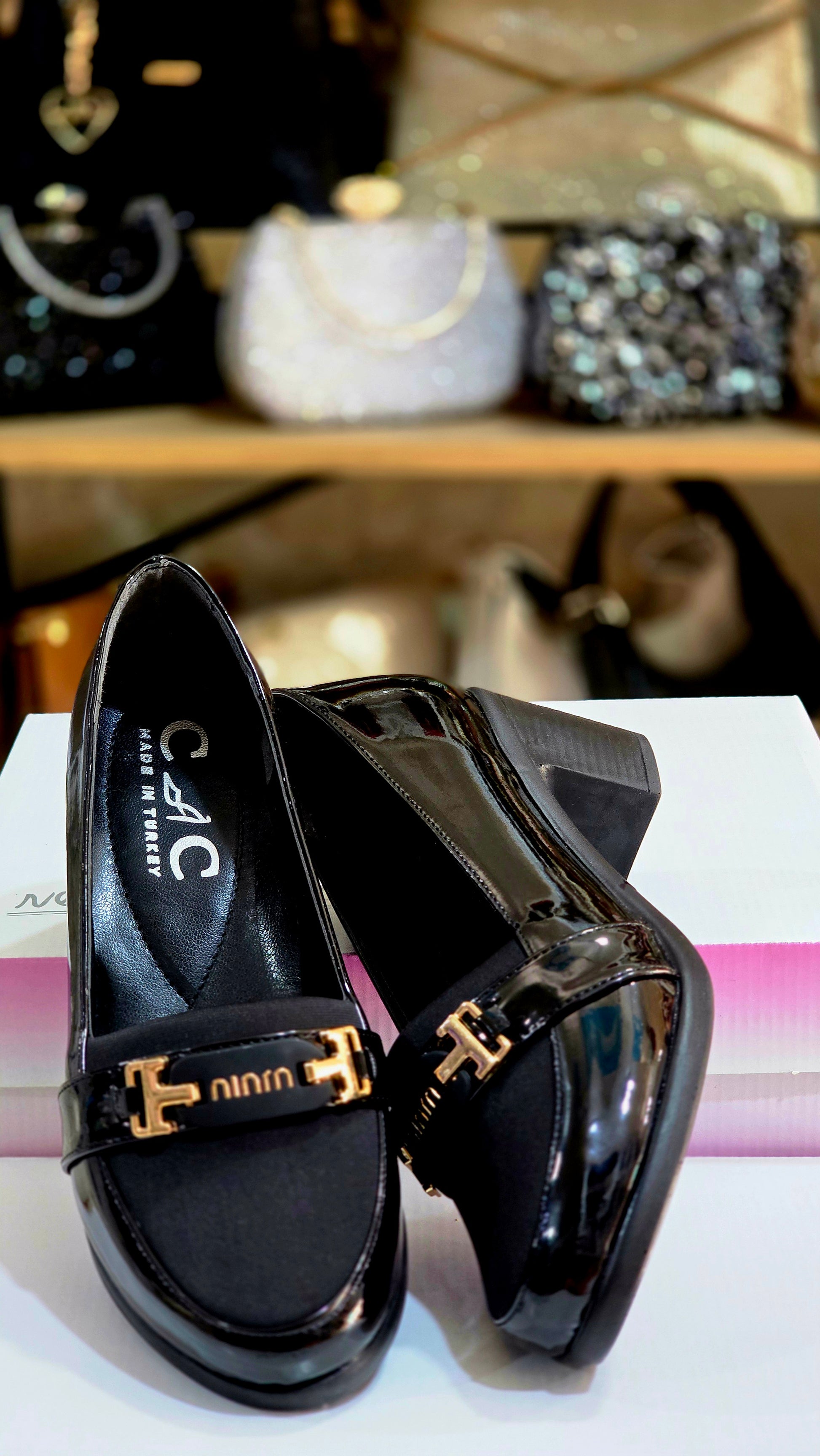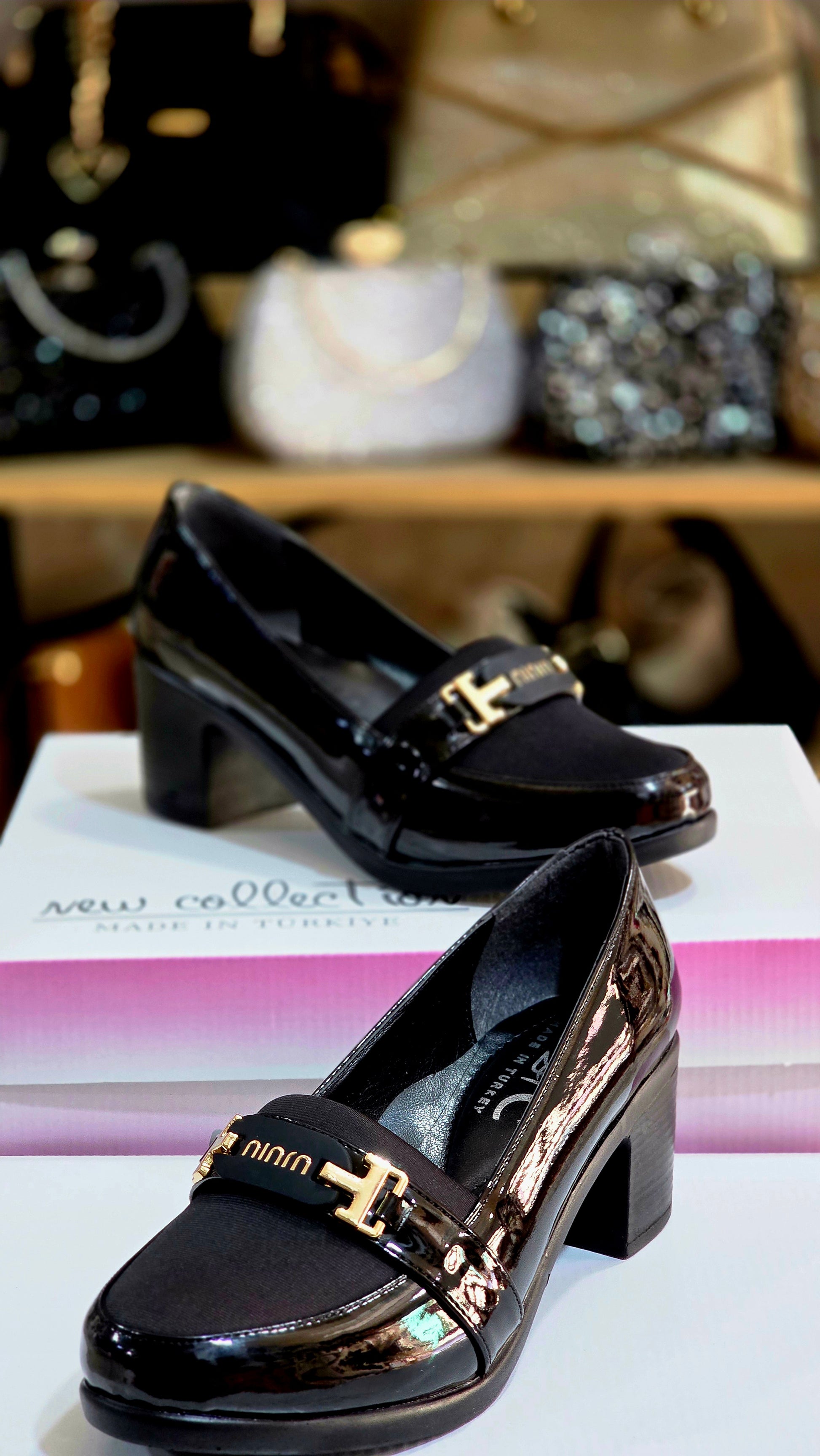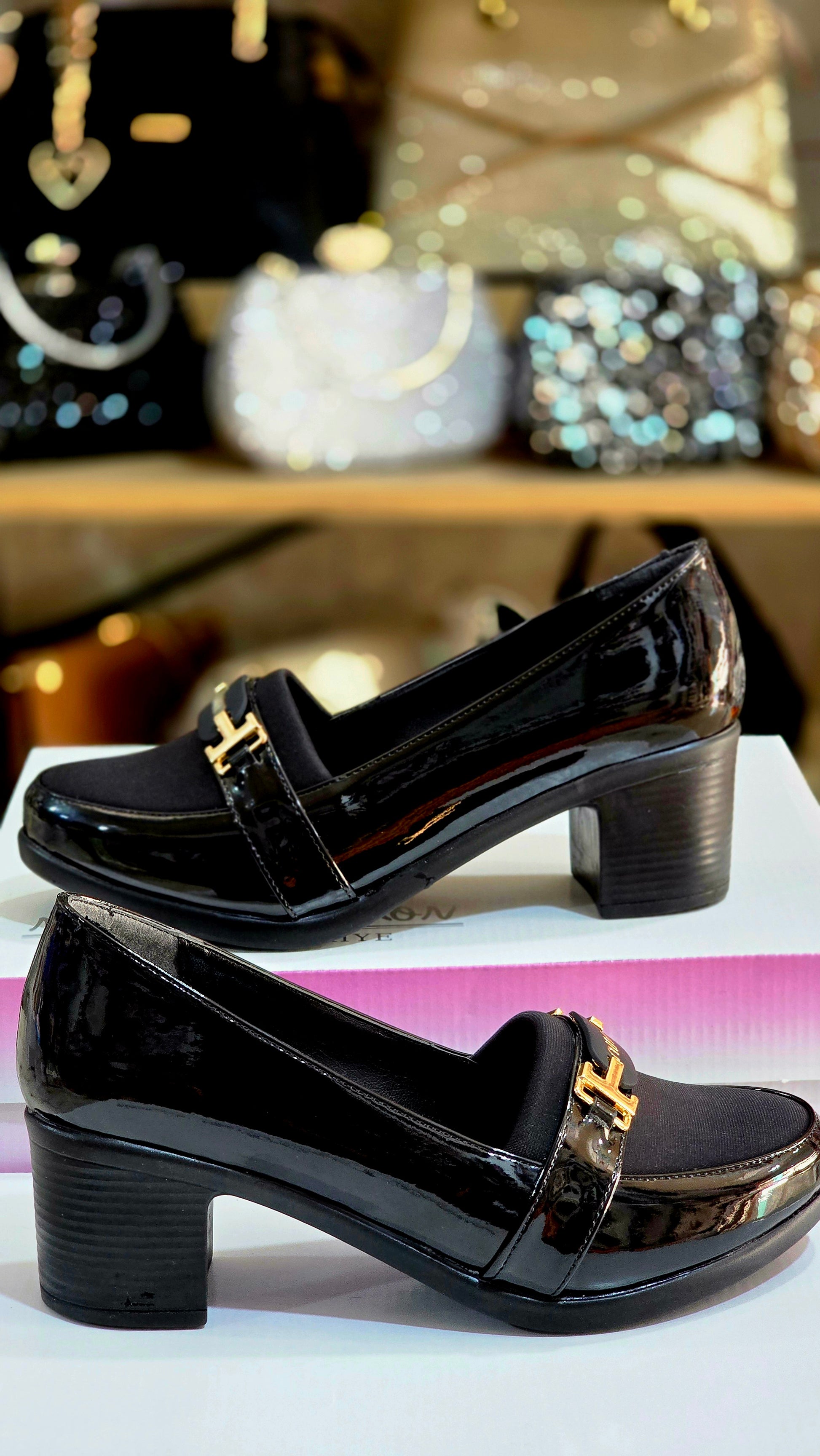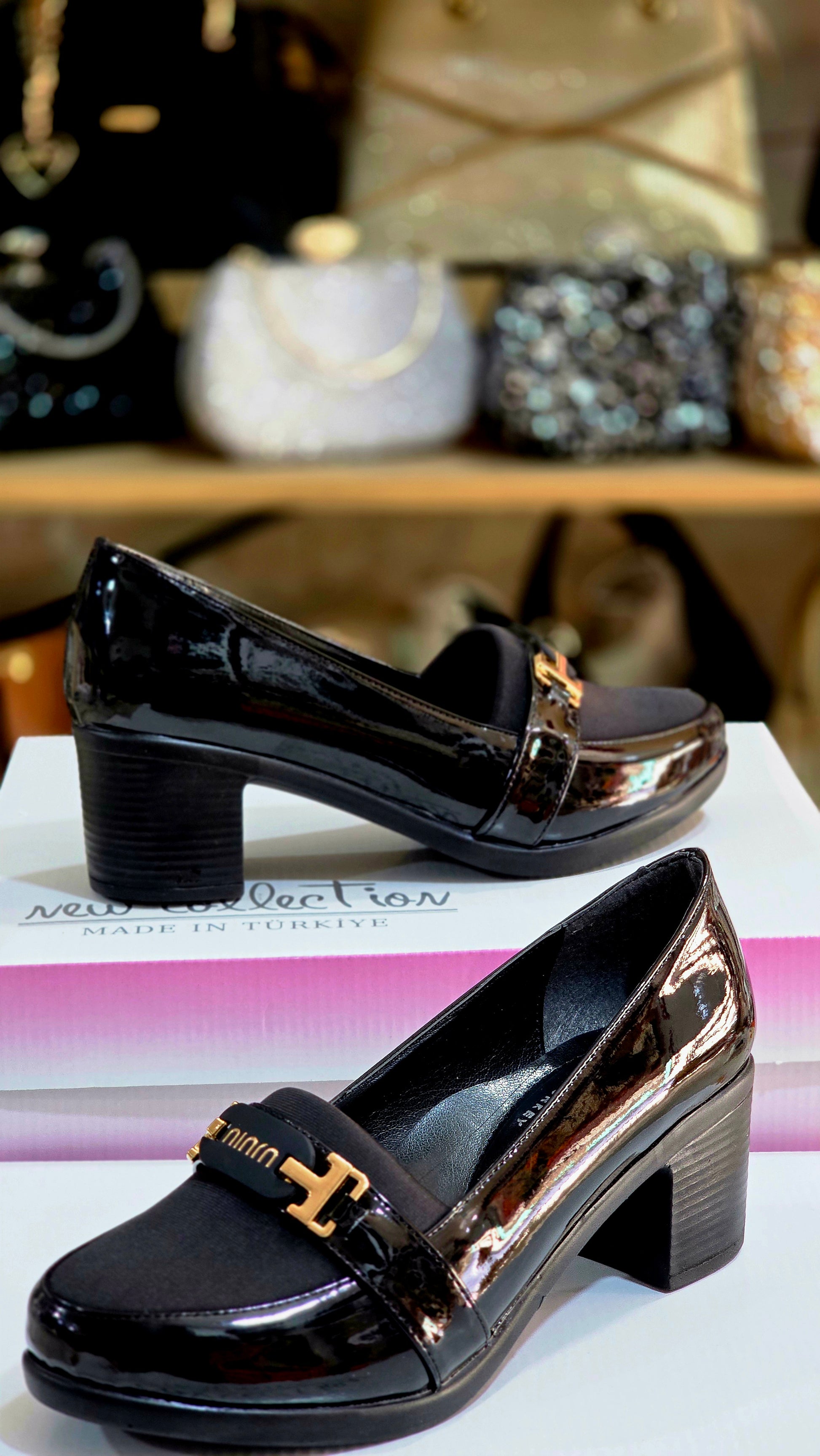 Şık Günlük Kadın Kalın Topuk Ayakkabı – Parlak Deri Detaylı