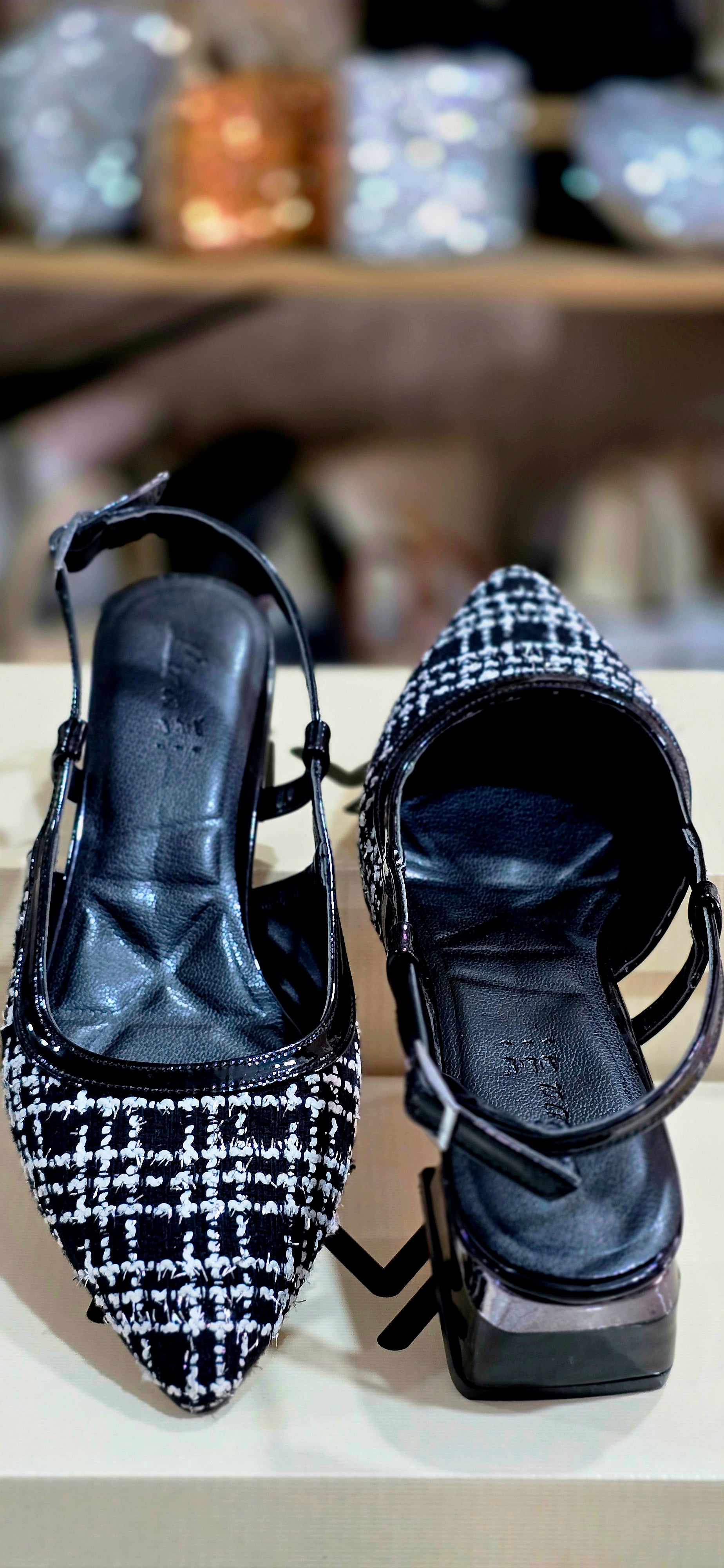 Tweed Collection Şık Tasarım Tweed Kumaş Sivri Burun Kadın Topuklu Ayakkabı