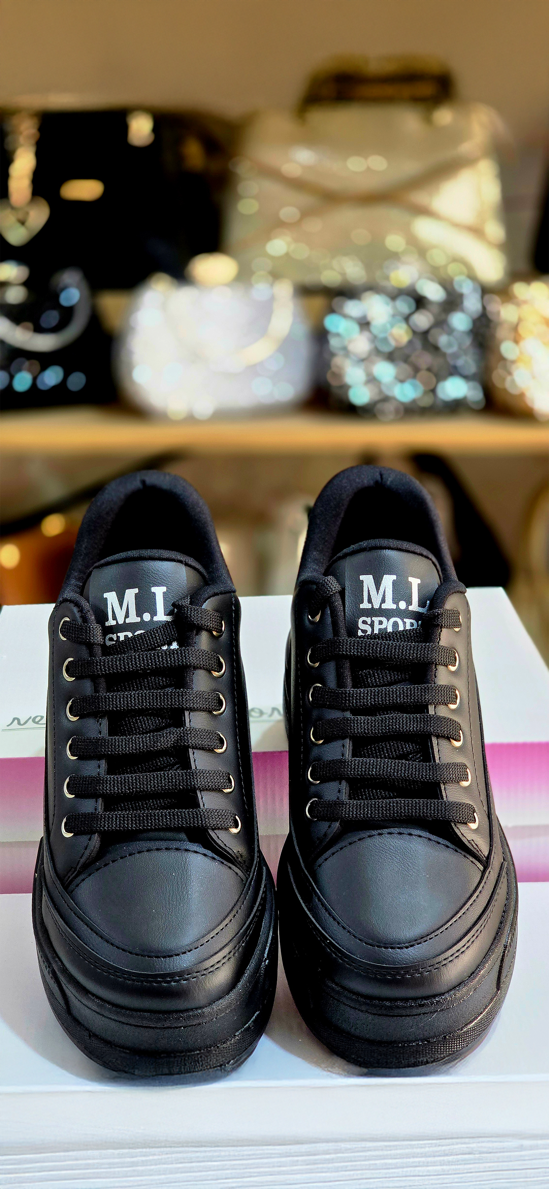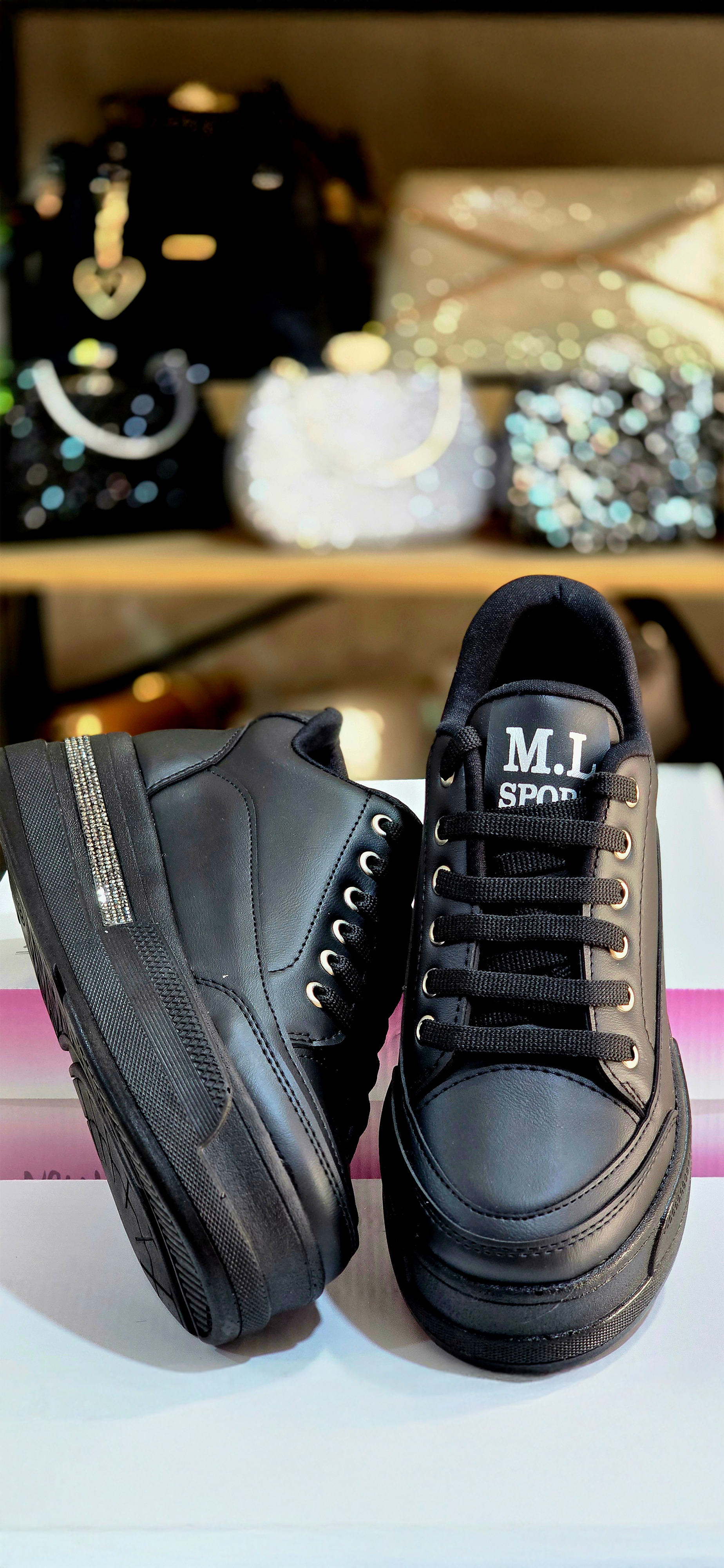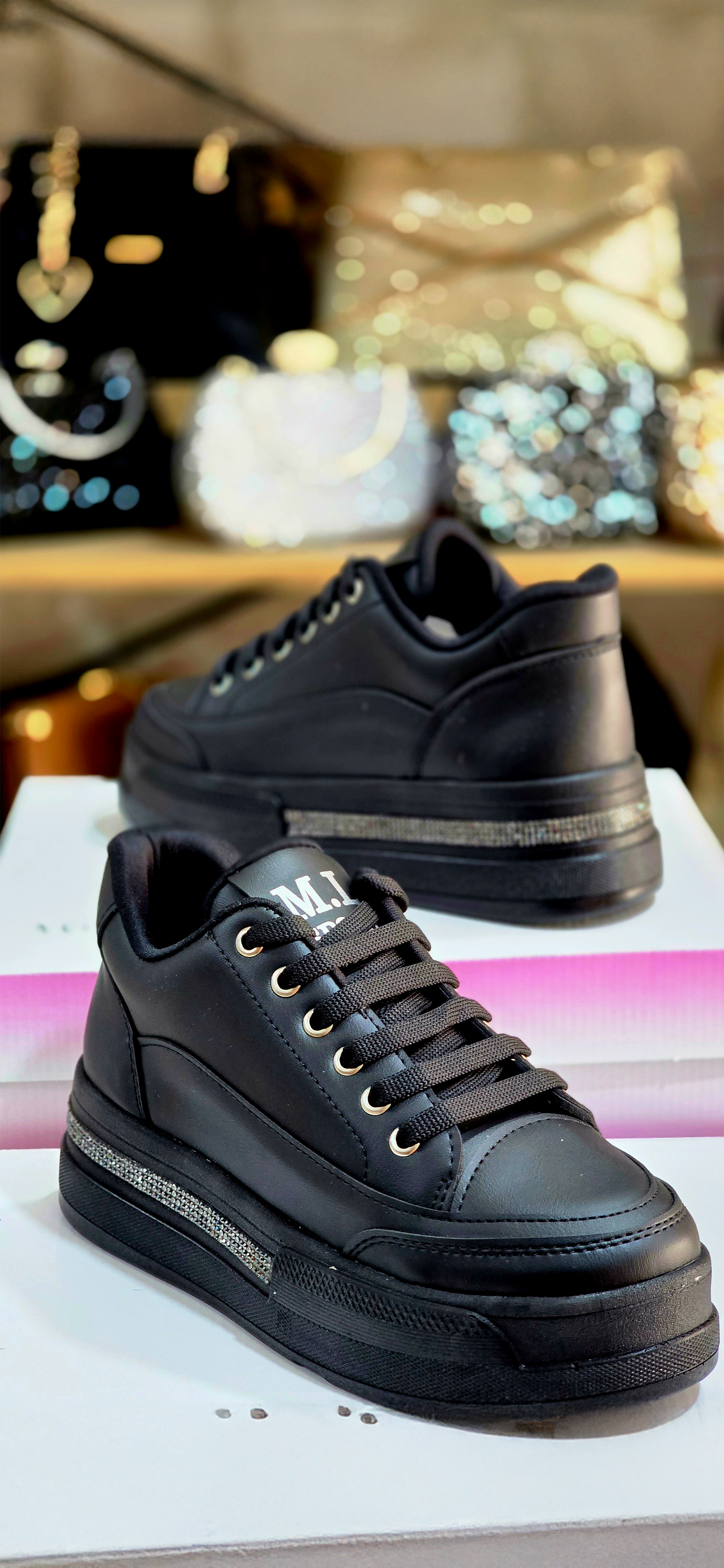 - Siyah renk seçeneğiyle şıklığı ve zarafeti ayaklarınıza taşıyan yüksek taban spor ayakkabı, her kıyafetle kolayca uyum sağlar.